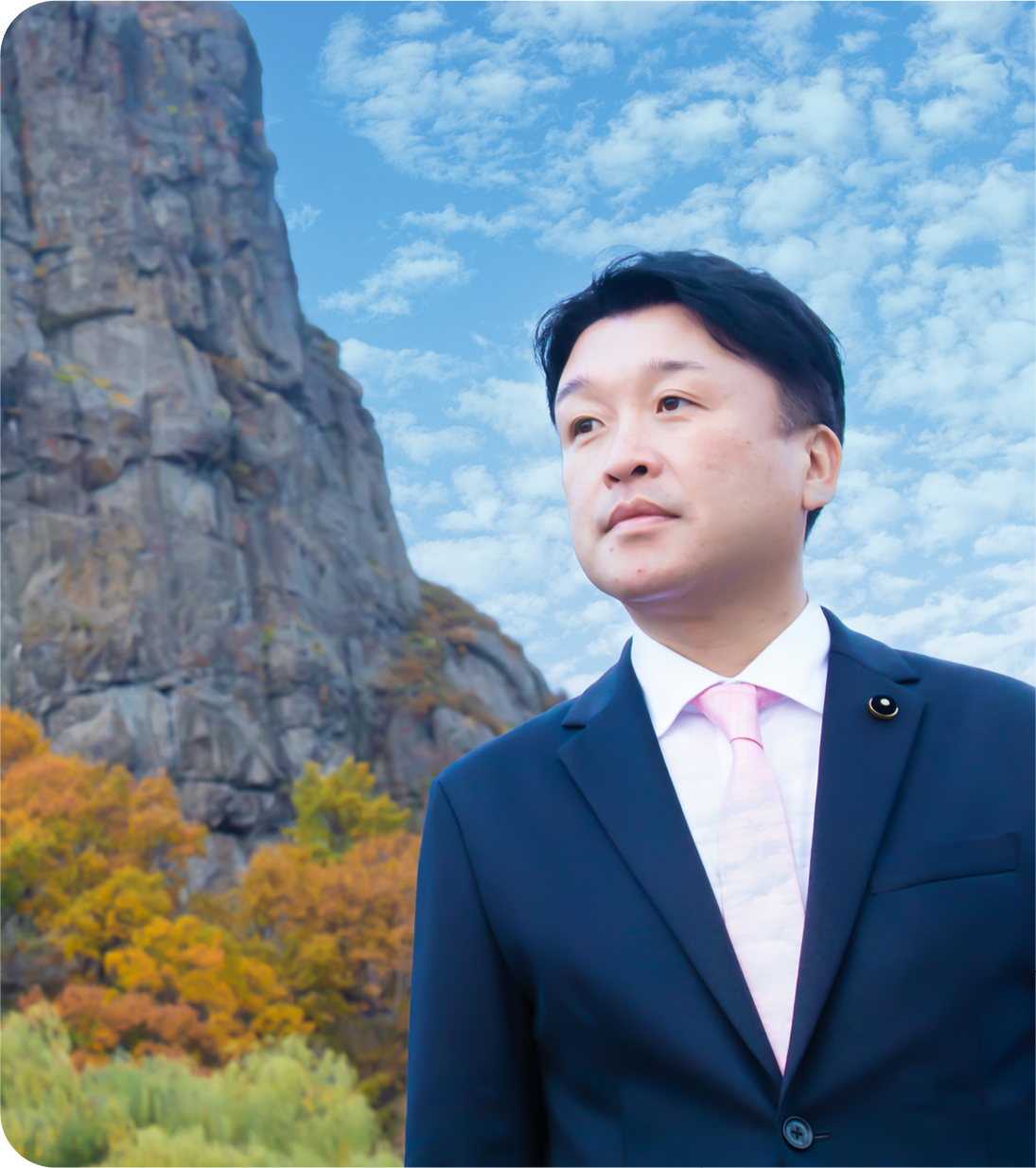 地上から約78メートルにそびえる瞰望岩(がんぼういわ)は、アイヌ語で「インカルシ」、見晴らしの良いところという意味です。えんがるの町名はこの言葉に由来するほど、瞰望岩は町のシンボル的な存在で、町のあらゆる所から望むことができ、その場所ごとに表情が変わります。