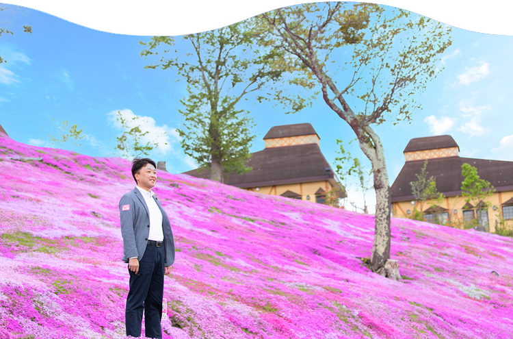 5月上旬から6 月上旬にかけて「芝ざくら滝上公園」一面に咲き誇る芝ざくらは「みかん箱一杯」の芝ざくらの苗から始まりました。以来毎年増殖し、今では10 万平方メートルの大群落になりました。