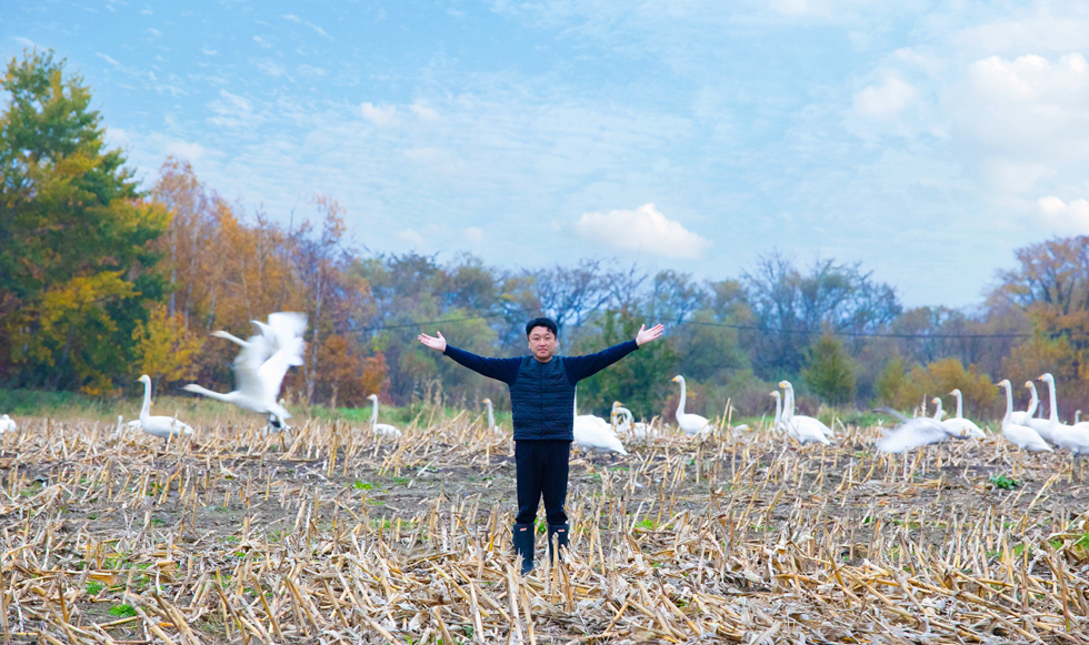 湧別は白鳥の渡りルートなので春と秋にはダイナミックに飛んでいる様子が見られます。湖に浮かんでいる様子はおとなしいですが、はばたいているさまは力強く何羽も連なって飛び去っていく様子は迫力があるので野鳥ファンとしてもうれしいポイントですね。